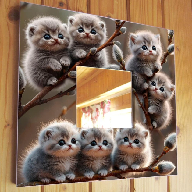 Декоративне дзеркало "Кошенята на гілках верби" прикраса інтер'єру для спальні, дитячої кімнати, подарунок