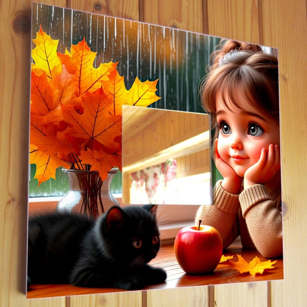 Декоративне дзеркало "Дівчинка і осінь" романтична прикраса інтер'єру спальні, дитячої кімнати, милий подарунок
