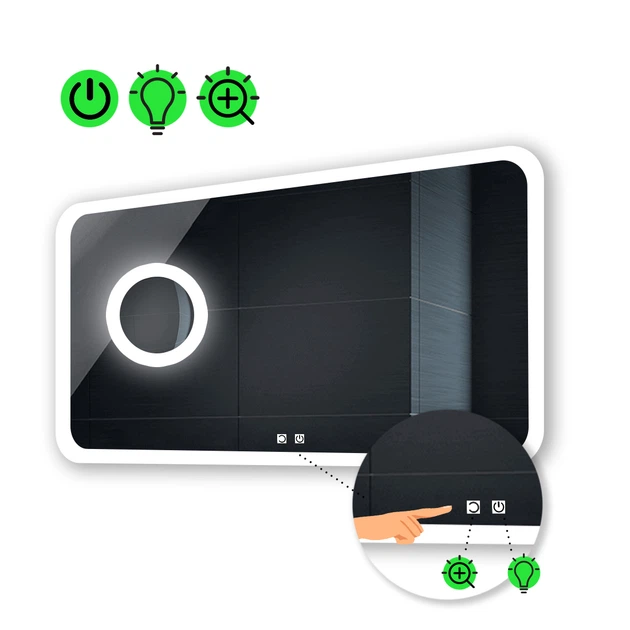 Прямокутне дзеркало з LED підсвіткою 90 на 80 см, з двома сенсорами та лінзою з підсвіткою, модель Francisca La Mir (Francis