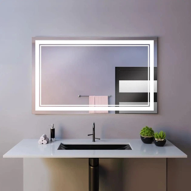 Настінне дзеркало з підсвіткою і діммером прямокутної форми Лайн Лед-05 80х130 см