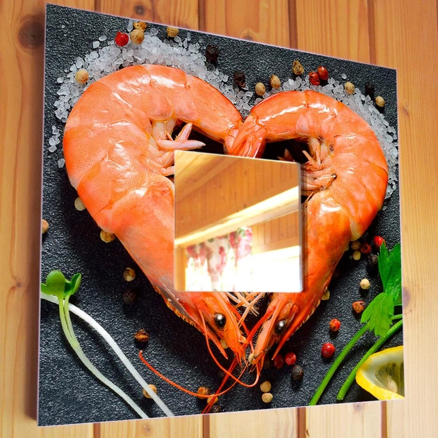 Декоративне дзеркало "Креветки у вигляді серця" декор прикраса для інтер'єру спальні, кафе, ресторану, суші бару, подарунок