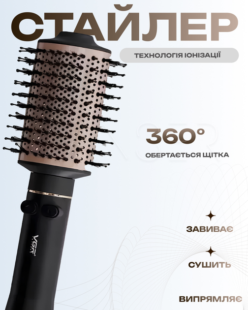 Фен-стайлер для сушіння та об’єму волосся, 1 обертаюча насадка, 2 режими, 3 температури, потужність 800 Вт