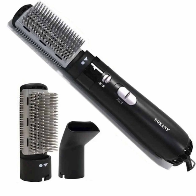Фен стайлер для волосся 2 в 1 Sokany з 2 насадками Чорний з бронзою