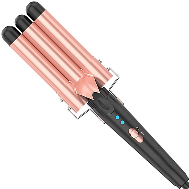 Щипці для завивки волосся 32 мм, керамічна плойка з потрійним циліндром ROLL STICK XL-290 Рожеві