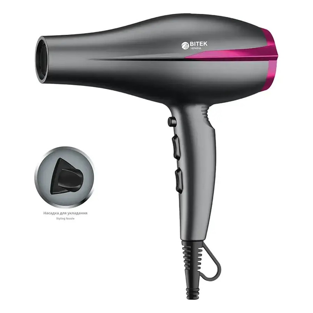 Фен для волосся BITEK 409 2200 Вт з іонізацією, концентратором, 6 режимів, захист від перегріву, петля для підвішування