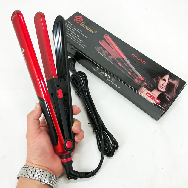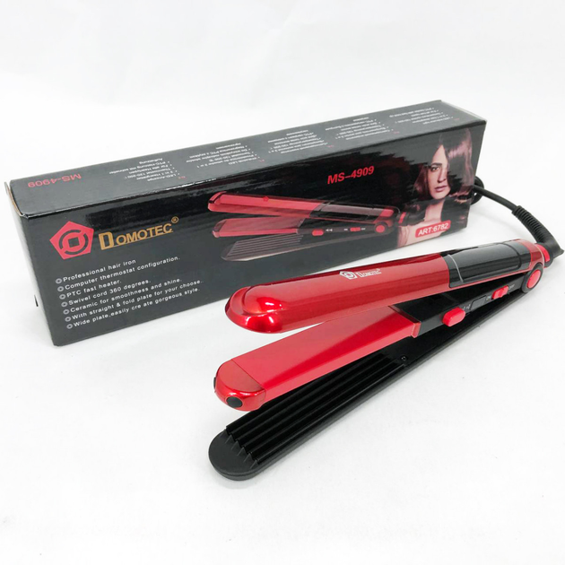 Плойка гофре 2 в 1 Domotec MS-4909, чорно-червоний, стайлер для завивки, стайлер для укладання