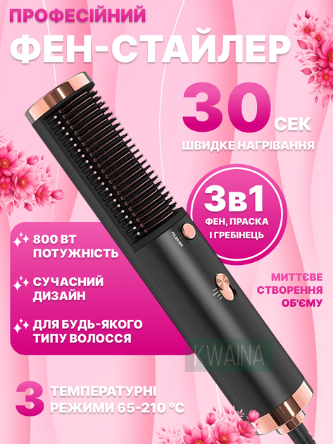 Мультистайлер браш фен, гребінець, випрямляч та плойка 3 в 1 на 800 Вт, фен-щітка для укладання волосся з іонізацією, Чорний