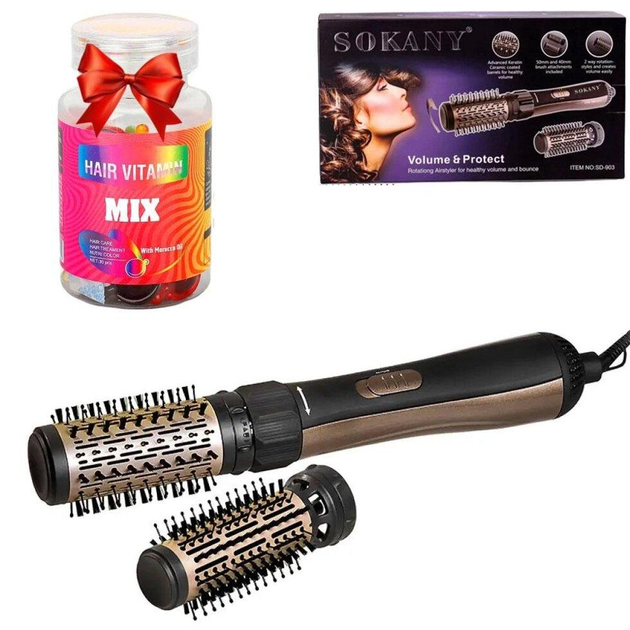 Фен-щітка браш для укладання волосся з 2 насадками, Sokany / Стайлер для завивки