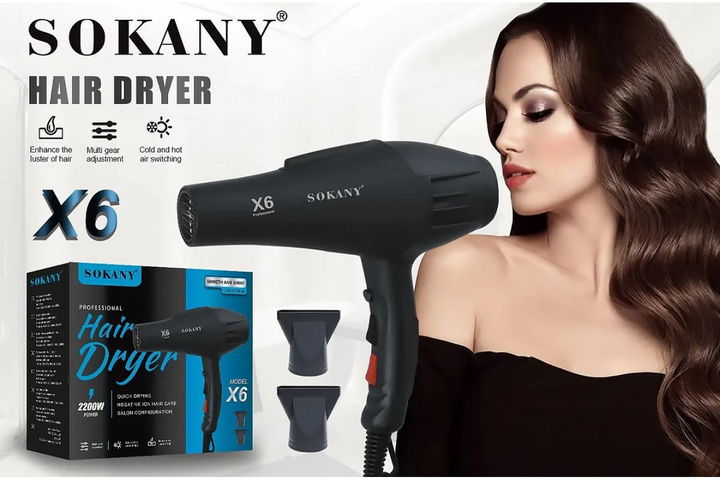 Фен SOKANY X6 потужний фен 2200 Вт з іонізацією та насадкою-концентратором