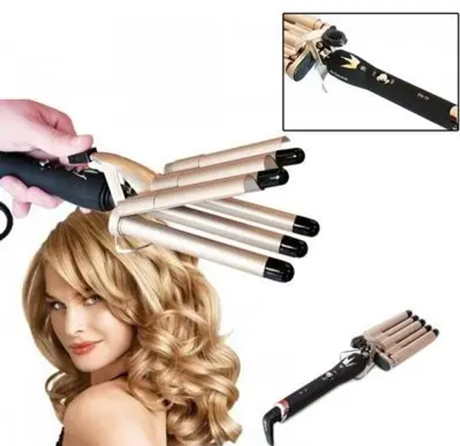Плойка Хвиля Gemei GM 2933, Щипці для завивки волосся, гофре, плойка п'ять хвиль, накрутка хвиля