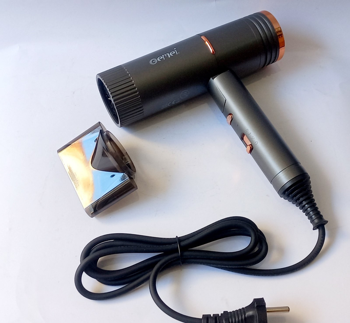 Фен Gemei Gm-1787 для сушіння та укладання волосся з концентратором та функцією холодного повітря, 2000 Вт. Чорний