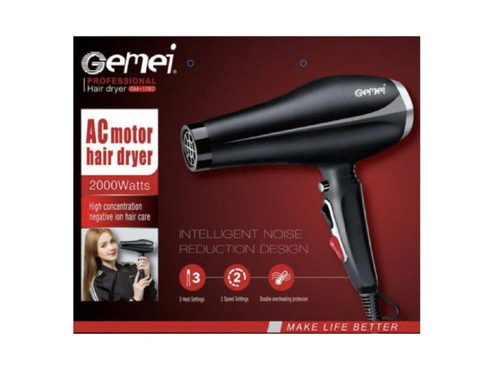 Фен Gemei GM-1787 холодний повітря, 2 швидкості, 3 режими температури, потужність 2000 Вт Чорний