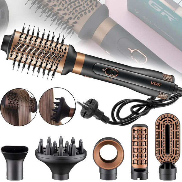 Фен стайлер для укладання волосся VGR V-491 6 в 1 щітка браш з насадками 1000W / Мультистайлер для сушіння і випрямлення з к