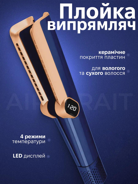 Професійний випрямляч плойка для волосся 2швидкості 5 режимів Стайлер Air Straightener 1300Вт Синій/золото