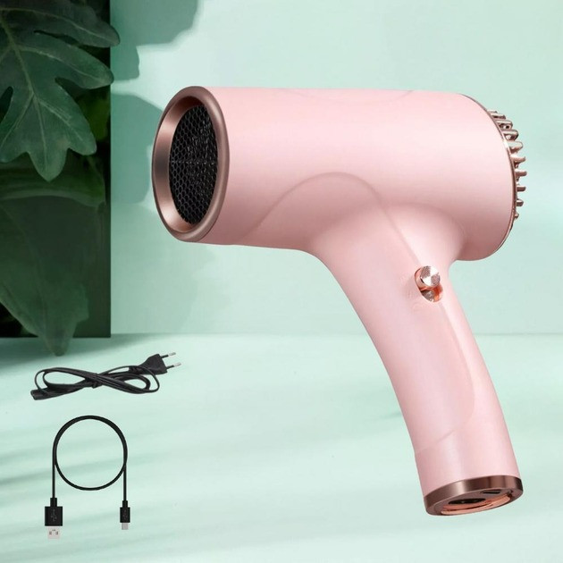 Компактний акумуляторний фен для сушіння та укладання волосся WHD-01 Бездротовий фен потужністю 500 Вт. Рожевий 028m