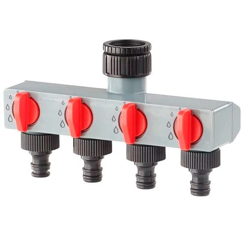 Розподільник для поливу на 4 лінії, ударостійкий пластик, підключення 1", 3/4", 11.5x19x5.4 см