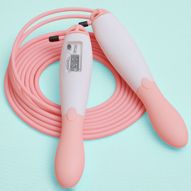 Скакалка з лічильником стрибків 2,7м, "Кеглі", Рожева , Швидкісна скакалка для втрати ваги , Спортивна скакалка ( 665 )