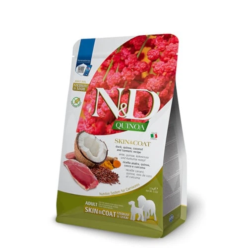 Сухі корми для собак Farmina N&D Quinoa Skin&Coat ADULT MEDIUM & MAXI дієт. харчування, при харчовій алергії з качкою, кіноа
