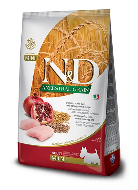 Низькозерновий сухий корм Farmina N&D Low Grain Dog Chicken&Pomegranate Adult Mini для собак дрібних порід з куркою та грана
