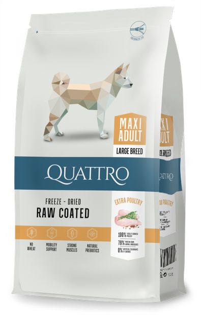 Повнораціонний сухий корм для дорослих собак великих порід Quattro Maxi Adult з м'ясом птиці, 12 кг