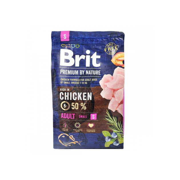 Корм сухий Brit Premium Dog Adult S для дорослих собак дрібних порід вагою 1-10 кг з куркою 3 кг