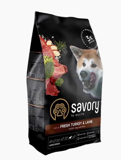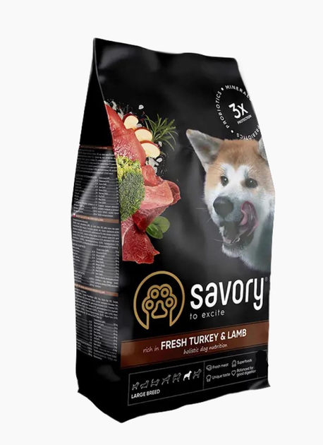 Корм сухий Savory Large Breeds rich in Fresh Turkey and Lamb для дорослих собак великих порід від 25 кг свіжим ягням та інди