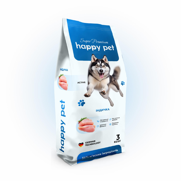 Сухий корм для активних собак великих та середніх порід Happy Pet з індичкою 3 кг