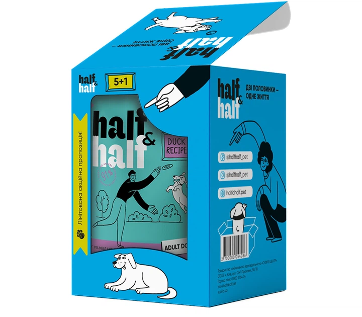 Консервований корм Half&Half Набір вологих кормів "5+1" для дорослих собак, шматочки з качкою в соусі 6 шт х 100 г (11112143