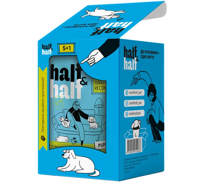 Консервований корм Half&Half Набір вологих кормів "5+1" для цуценят, шматочки з індичкою в соусі 6 шт х 100 г (1111214334)