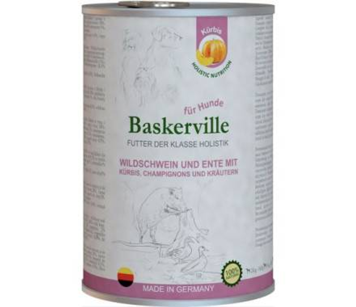 Вологий корм для собак Baskerville HF Holistic Wildschwein та Ente Mit Kurbis Кабан та качка з гарбузом 400 г