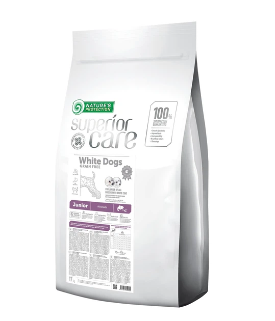 Сухий беззерновий корм для юніорів з білим забарвленням вовни, для всіх порід