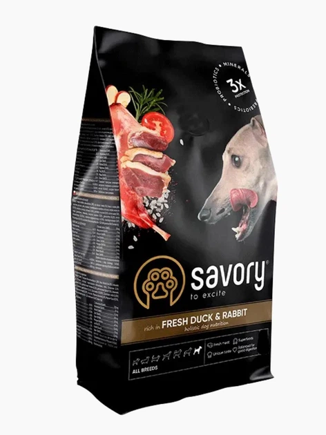Сухий корм Savory Adult All Breeds rich in Fresh Duck & Rabbit для дорослих собак 12 кг (кролик та качка)