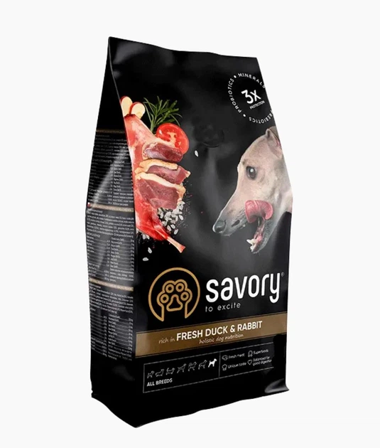 Сухий корм для собак Savory Adult All Breeds rich in Fresh Duck & Rabbit з качкою та кроликом 3 кг