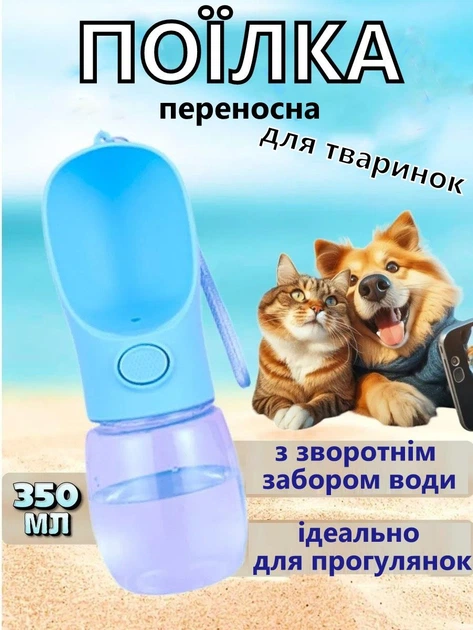 Дорожня пляшка для тварин, портативна поїлка для собак і котів 350мл Блакитна