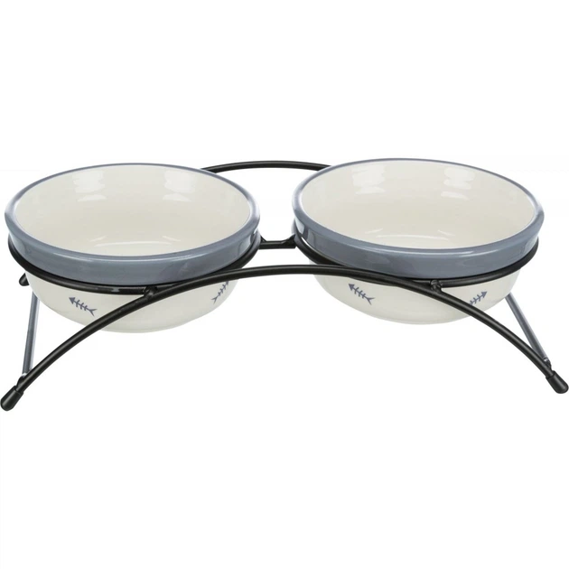 Миски Trixie для котів Eat on Feet керамічні підвійні на металевій підставці 2x300 мл/12 см