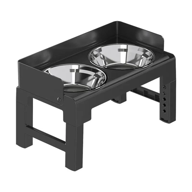 Миска для собак Pakeway 2 х 2 л подвійна на підставці, з нержавіючими мисками, Чорна (209-BLACK)