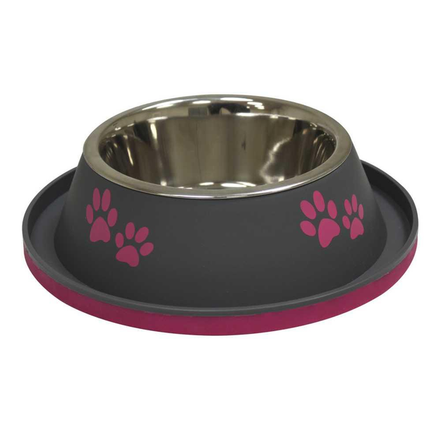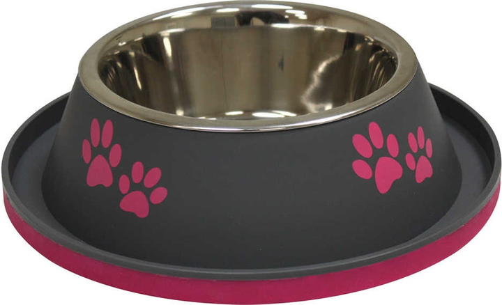 Міска Croci No Spill серая, гумове дно, бортик від мурів, C6059579 пластик + нержавейка, 0.4 л, 20 см