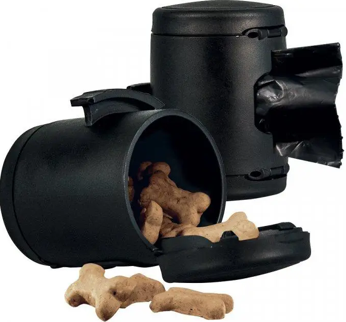 Контейнер для ласощів або пакетів для прибирання за собакою з кріпленням на повідець - рулетку Flexi MultiBox чорний d5*7см