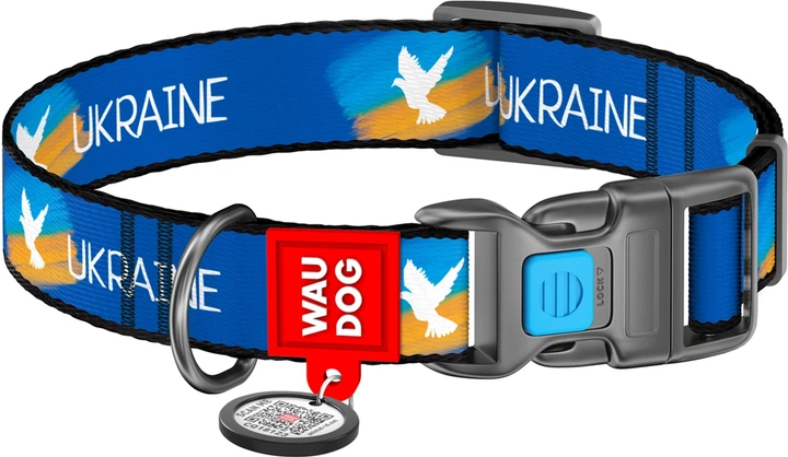 Нашийник для собак нейлоновий з QR паспортом малюнок "Прапор" пластиковий фастекс розмір M Ш 20 мм Дов 28-40 см (4502-0229Co