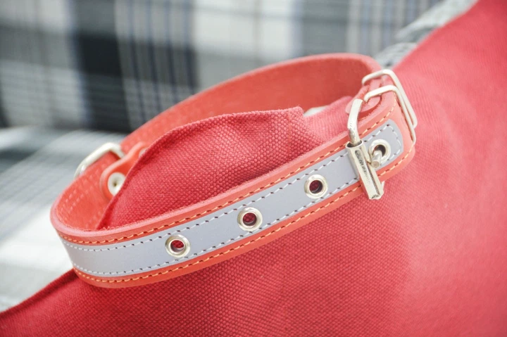 Нашийник для собак шкіряний зі світловідбивною стрічкою 44-55