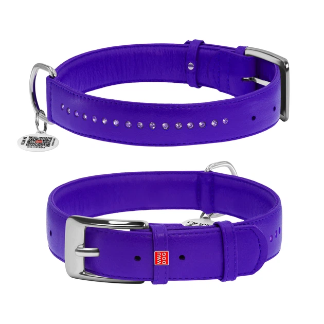 Нашийник для тварин WAUDOG Glamour з QR паспортом без прикрас XS Ш 15 мм фіолетовий (32709)
