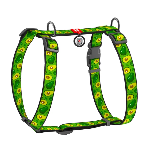Шлей для собак анатомічний H-подібний WAUDOG Nylon з QR-паспортом малюнок "Авокадо" пластиковий фастекс L Ш 25 мм А 50-90 В