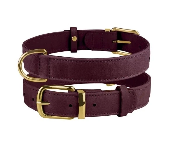 Ошийник для собак Bronzedog Crazy, шкіряний, бордовий, L, 38-492.5 см