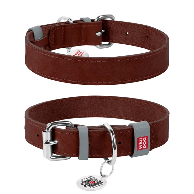 Нашийник для собак великих порід шкіряний WAUDOG Classic XL, довжина 46–60 см, ширина 35 мм, коричневий, металева фурнітура,
