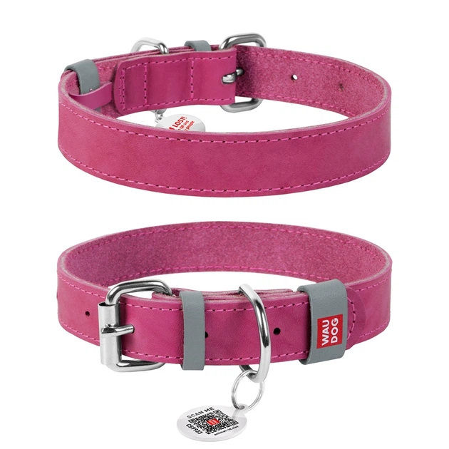 Нашийник для собак шкіряний WAUDOG Classic, Ш 35 мм, Дл 46-60 см, рожевий