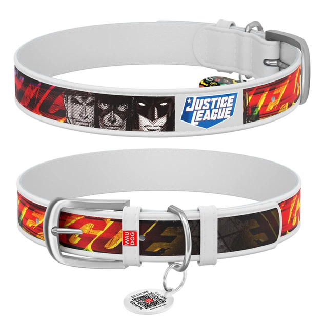 Нашийник для собак шкіряний WAUDOG Design з Ліга Справедливості Ш 25 мм Дл 37-48 см білий