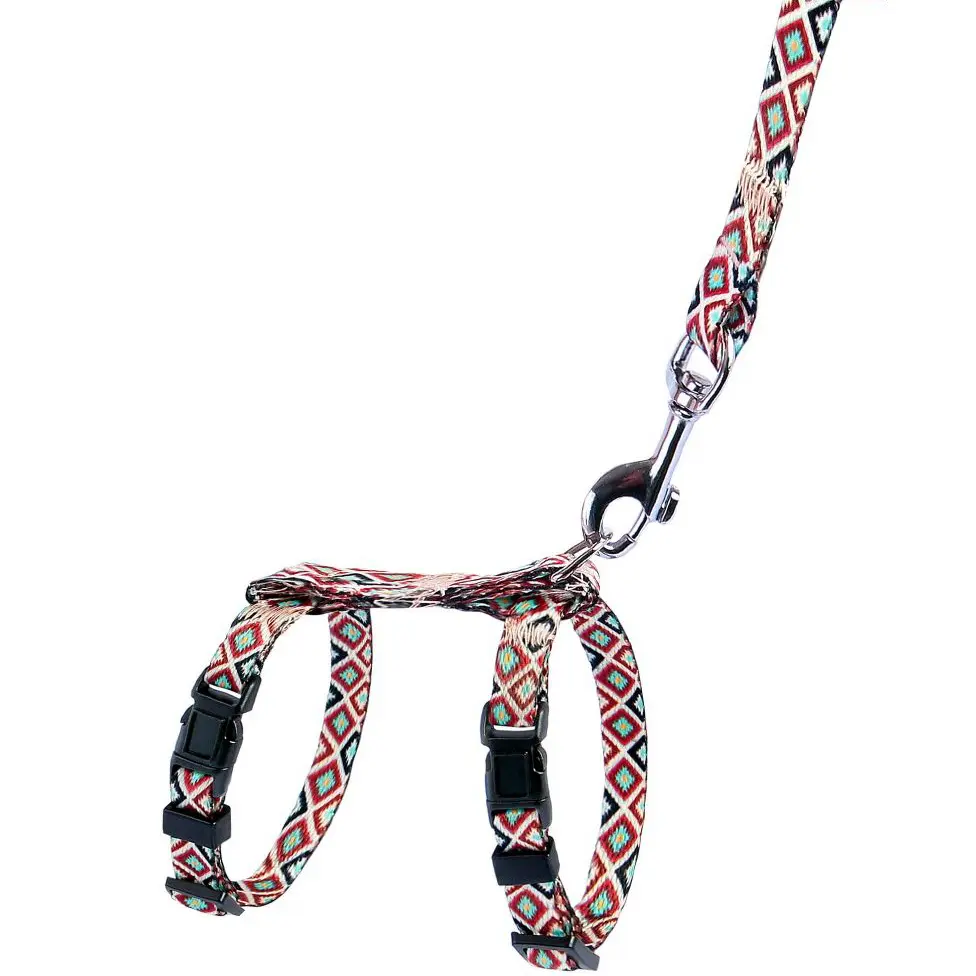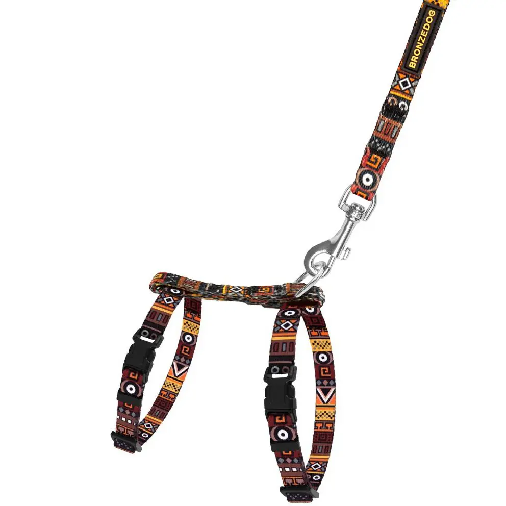 Шлея для котів та собак дрібних порід BronzeDog Urban Орнамент інки з нашивкою та повідцем XXS 15-23 см