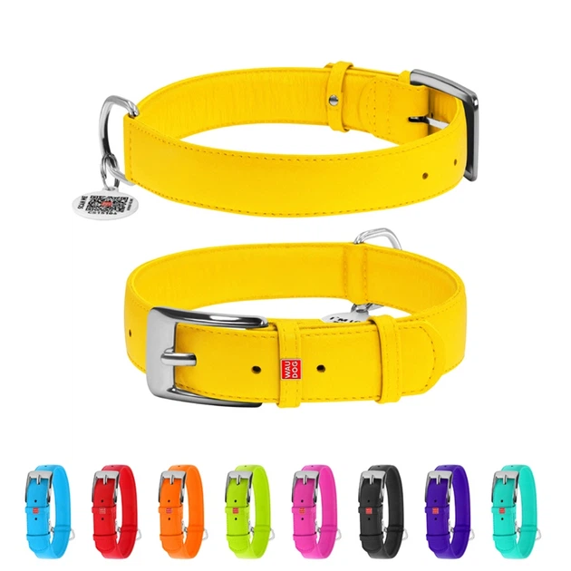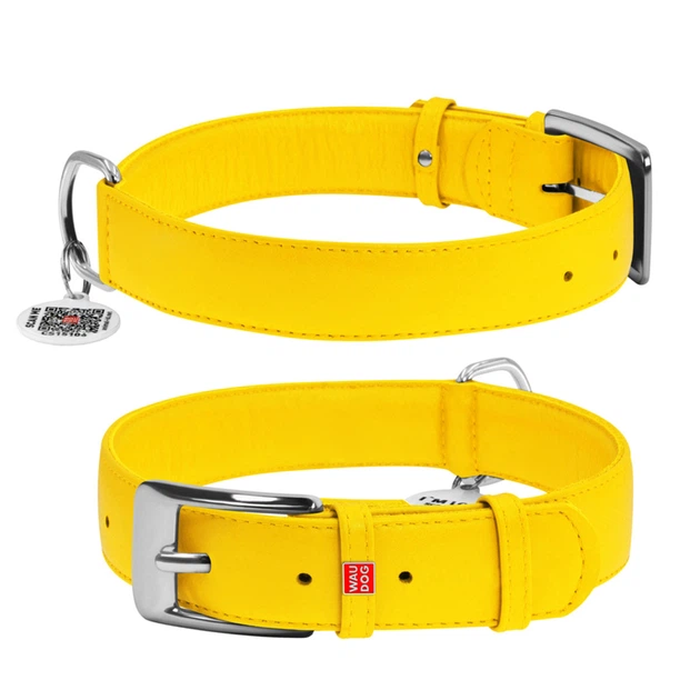 Нашийник для собак шкіряний WAUDOG Glamour з QR паспортом, без прикрас, Ш 35 мм, Дл 46-60 см, жовтий