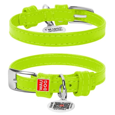 Нашийник для тварин WAUDOG Glamour з QR паспортом без прикрас M Ш 25 мм салатовий (33045)