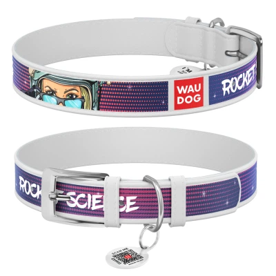 Нашийник для тварин WAUDOG Design з QR паспортом "Космос. Ракета" XL Ш 35 мм Д 44-58 см білий (0035-0125-15)